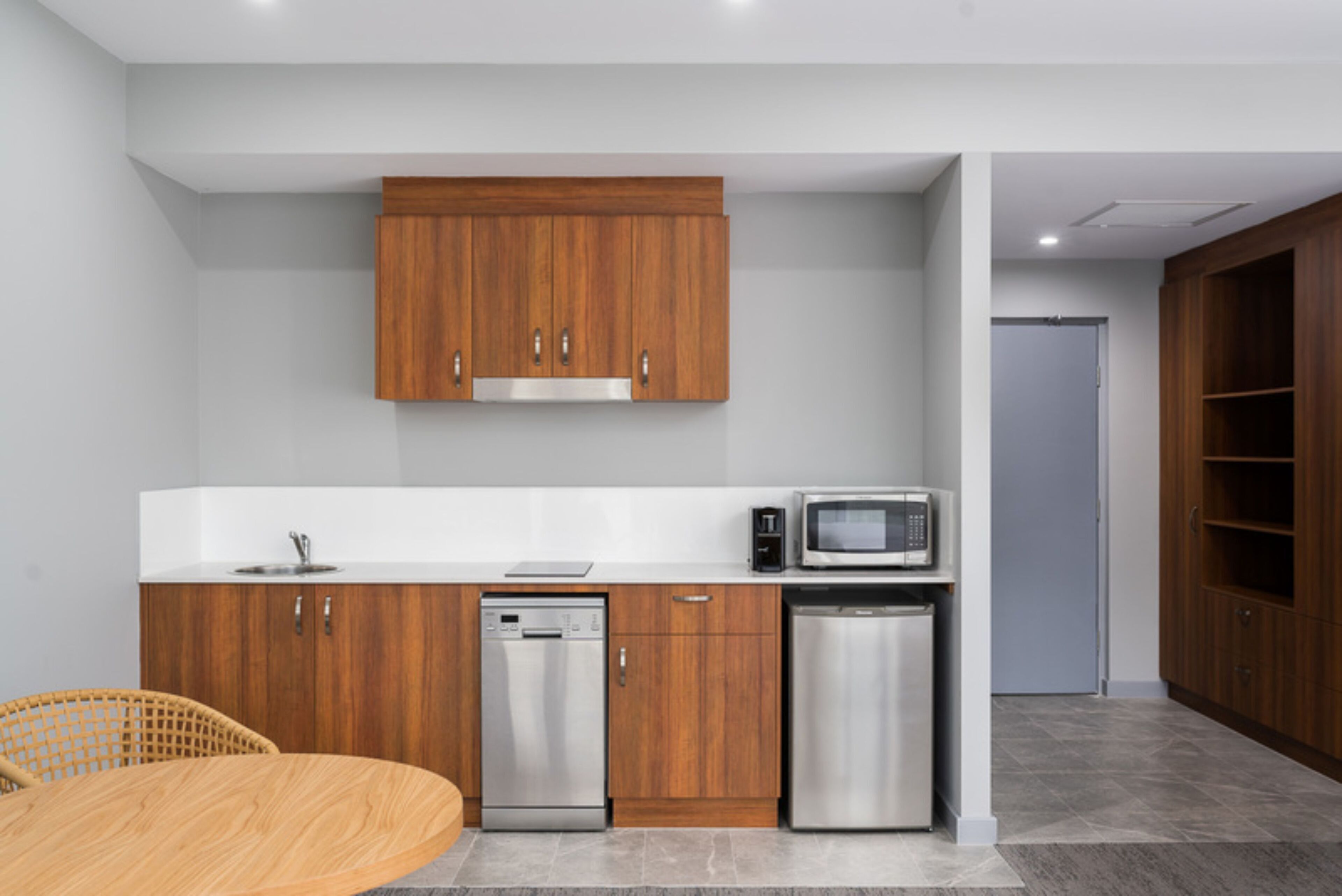 Featuring coastal-inspired boutique furnishings and a balcony area, these King Studios feature a kitchenette with refrigerator,microwave, cook top and dishwasher. They are also equipped with a washing machine and dryer, ensuite with walk-in rain shower, Vanity Bathroom amenities and air conditioning/heating.